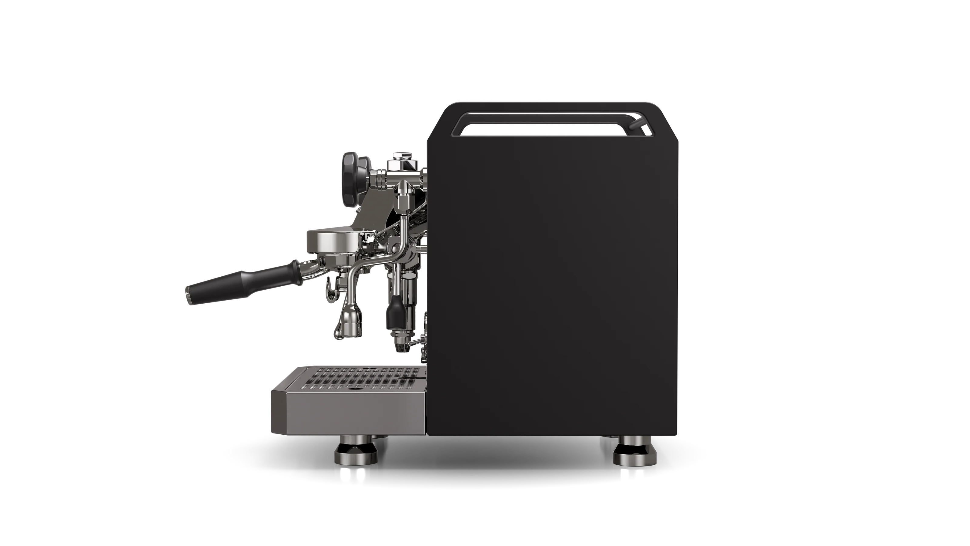 The Mozzafiato Fast draws inspiration from an unexpected yet unique source: iconic vehicle roof rails from the past. Its die-cast sides highlight the exceptional build quality, with shapes and forms inspired by legendary vehicles such as the 1980s Volvo station wagons. This blend of robust and adventurous aesthetics reflects Rocket Espresso’s dedication to high-quality craftsmanship and functionality.
